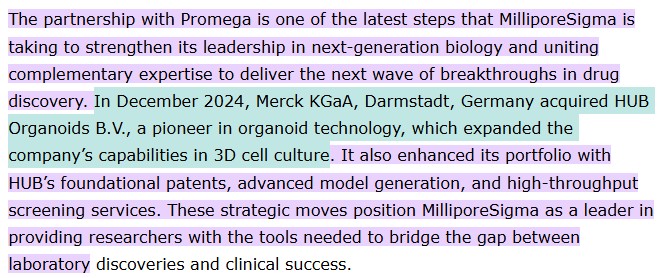 머크(Merck KGaA)는 장기 유사체 기술 확보를 위해 2024년 네덜란드의 HUB Organoids사를 인수하고 자사의 3D 세포배양 플랫폼 역량을 강화하였다.
