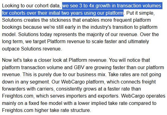이런 성장이 가능했던 이유는 한 번 입점하게 되면 사용자(cohorts)들이 평균적으로 2년 동안 3~4배 정도 거래량을 늘려나가기 때문이다.
