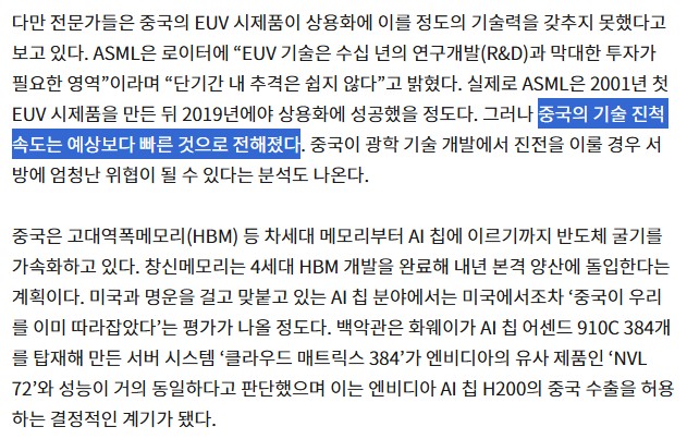 중국은 계속해서 반도체 장비를 국산화하고 있으며, 그 마지막 퍼즐인 EUV 노광장비조차도 시장 예상보다 훨씬 앞서서 상용화를 눈앞에 두고 있다.